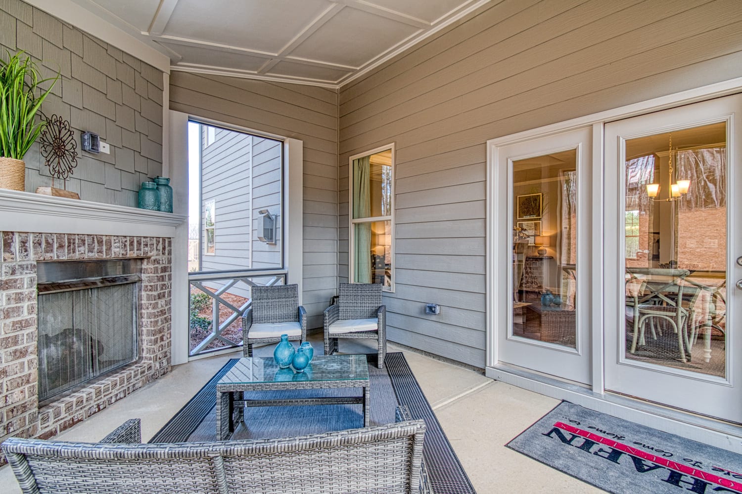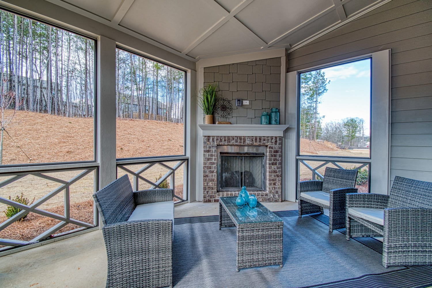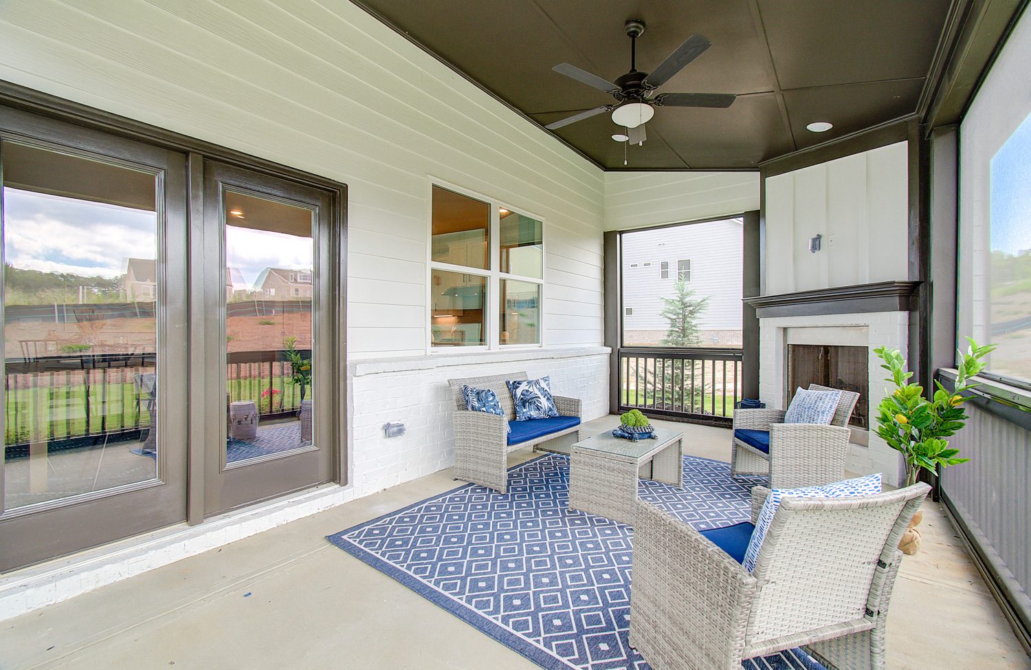 Almost all of our communities and floor plans offer the option of a covered rear porch – basements, too. You can screen it in and you can add an outdoor fireplace. Some plans come with a small one as standard and some plans offer a second covered rear porch option. Only our townhome communities cannot accommodate a covered rear porch.